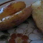 3.אחרי האפייה ,בזהירות פותחים את הנייר כסף, פורסים את התפו"א לשניים מורחים קצת חמאה, שמים מלח פלפל אפשר גם פפריקה וסוגרים את התפו"א לדקה בתוך נייר הכסף.