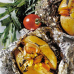 8. מוציאים מהתנור, מרחיבים את הצלב בתפוחי האדמה האפויים, כדי שיהיה נוח למלא