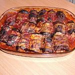 להניח קציצה בחלק הרחב של פרוסת החציל ולגלגל.